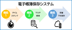 2024年1月の取引から開始される電子帳簿保存法に対応した電子データを適切な形でクラウドに保存するためのシステムで、電子帳簿保存法に対応した保管・検索・タイムスタンプに対応します。
